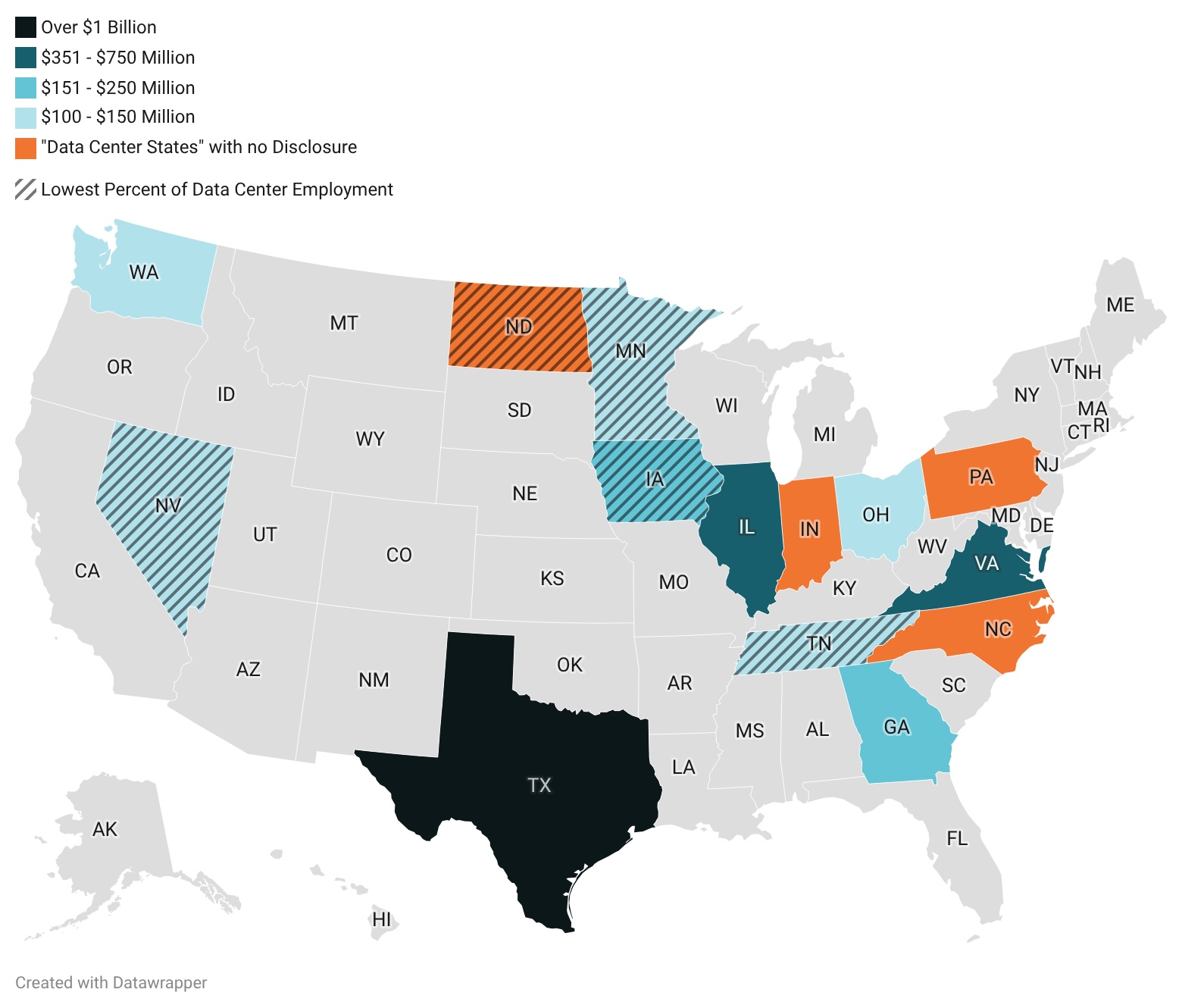 Map 5. Data Center Subsidies, Disclosure, and Employment Outcomes