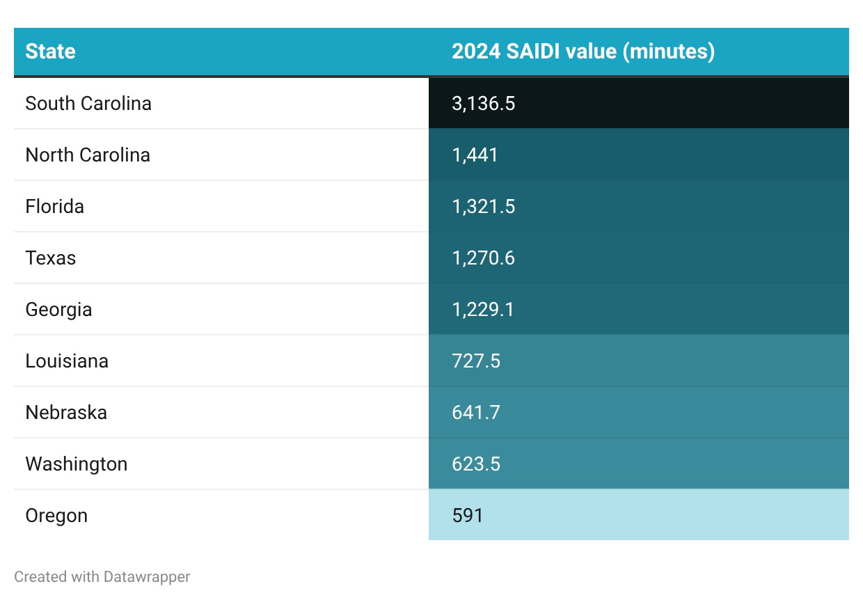 Table 4. 2024 SAIDI Values for “Data Center States”